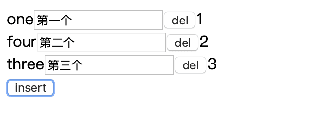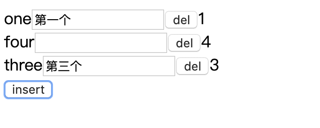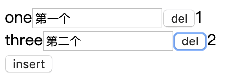 首先将key绑定为下标索引值。渲染出来是没有毛病的,但是前面我们看到key作用的时间是在diff的时候,当数据发生变化的时候,vnode节点树就会重新生成,之后通过diff找到修改的地方,然后把修改的地方通过dom方法修改(diff算法可以看看vue源码或者snabbdom,二者都采用了双端比较的算法,此处不讨论过多细节),所以,可以先可以在input里输入一些文字,这些文字是存在组件内部state的,然后,点击第二个Chlld的删除,此时却发现,只有外部的info显示更新了,而input里面的文字竟然没有更新